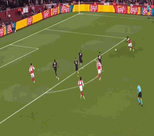 第48分钟,基米希解围失误,萨卡得球后进入禁区抽射打高。